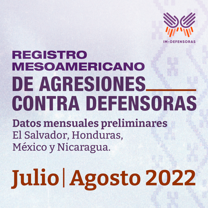 During the months of July and August of 2022, we have registered 379 cases of aggression against 112 women defenders in El Salvador, Honduras, Mexico and Nicaragua; 36 of these women were attacked while they participated in collective actions in defense of human rights.