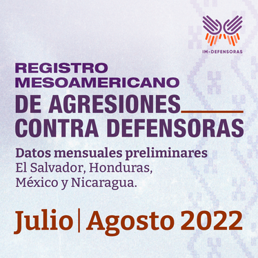 Mesoamerican Registry of Attacks against Women Defenders: July/August 2022 -- Preliminary monthly data