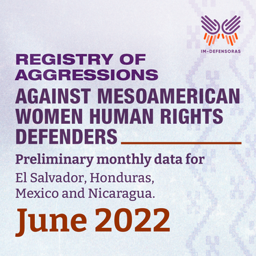 Registry of Aggressions against Mesoamerican Women Human Rights Defenders: June 2022 – Preliminary monthly data for El Salvador, Honduras, Mexico and Nicaragua.