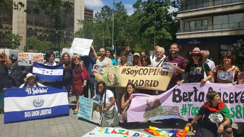 Last Wednesday, June 15, organizations and individuals from many different countries on the planet responded to the call put out by COPINH, congregatimg outside Honduran embassies and consulates to demand justice for Berta Cáceres, the formation of an independent investigatory group under the auspicis of the IACHR, and the immediate and definitive cancellation of the DESA company’s Agua Zarca Hydroelectric Project.