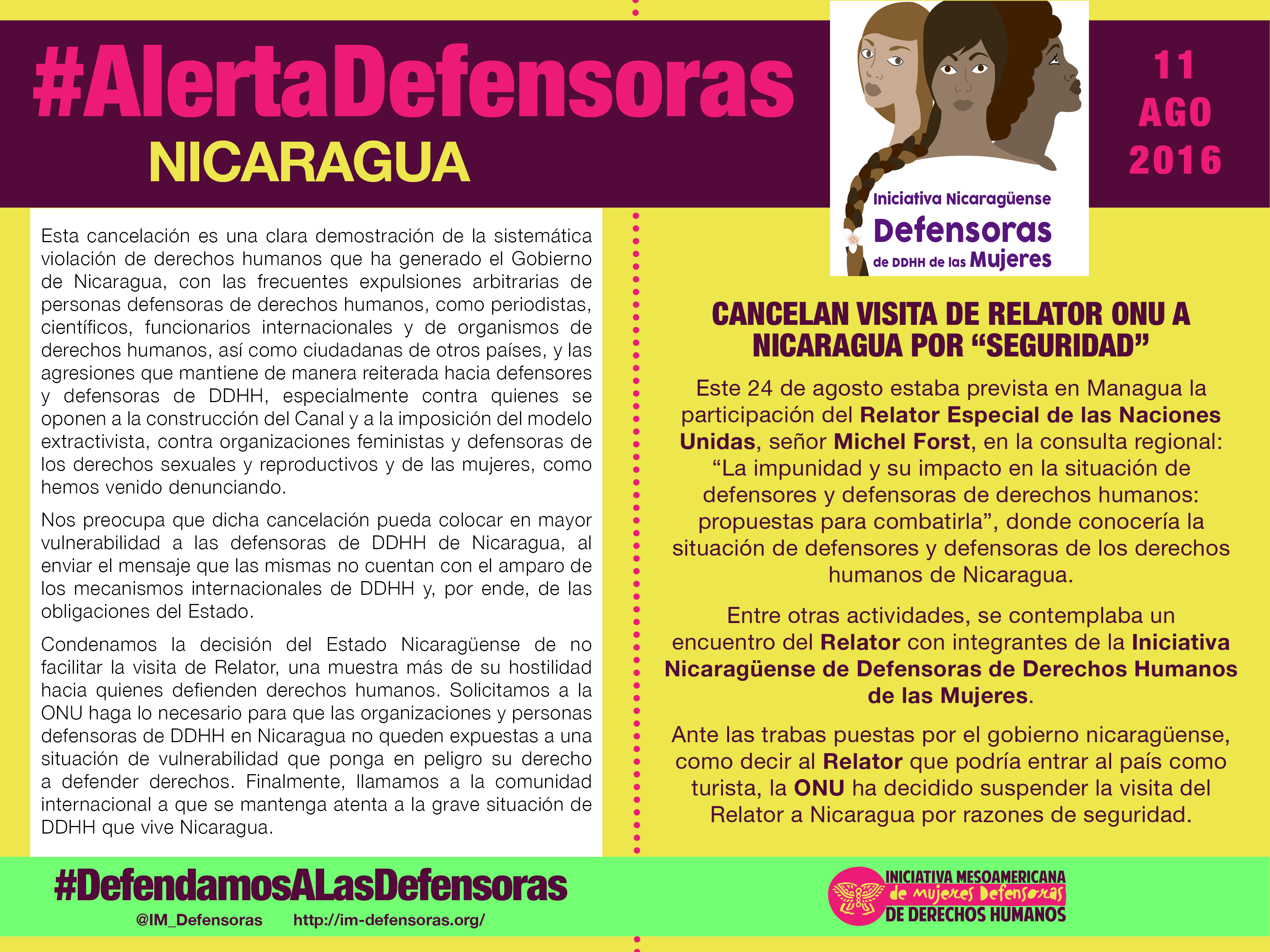 #AlertaDefensoras NICARAGUA / Cancelan visita de Relator ONU a Nicaragua por “Seguridad”