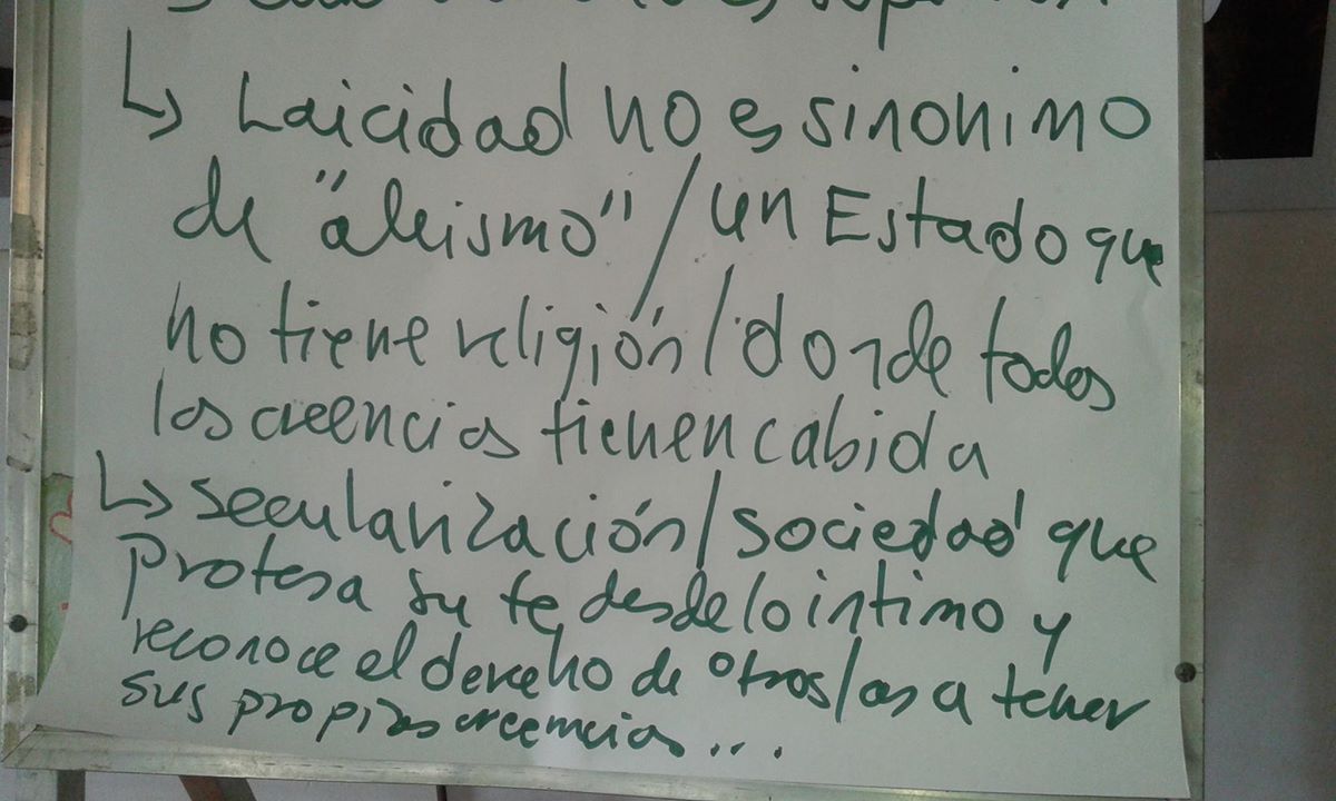 Martha explica que : “La laicidad no es sinónimo de ateísmo, sino que se refiere a un estado que no tiene religión y dónde todas las religiones que profesan sus ciudadanos tienen cabida. En tanto la secularidad, se refiere a lo que no es sagrado, a una sociedad que profesa su fe desde lo intimo, y reconoce el derecho de las otras personas a tener sus propias creencias”.