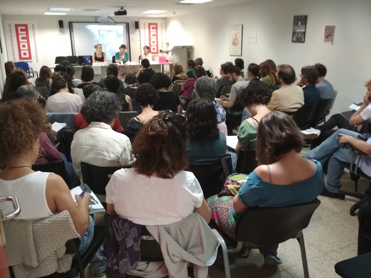 Ya en Madrid, el jueves 15 de mayo el local de Comisiones Obreras (CCOO) se llenó para escuchar a nuestras compañeras, quienes estuvieron acompañadas de destacadas activistas del Estado Español, como Yayo Herrero, Laura Medina y Miriam García-Torres, y la activista peurana Rocío Silva Santisteban. Al día siguiente, el viernes 16 de mayo, nuestra co-directora Teresa Boedo, acompañada por Sandra Peniche, Sonia Sánchez y María San Martín, de Front Line Defenders, facilitó un taller sobre protección integral feminista co-organizado por Calala y Eskalera Karakola.