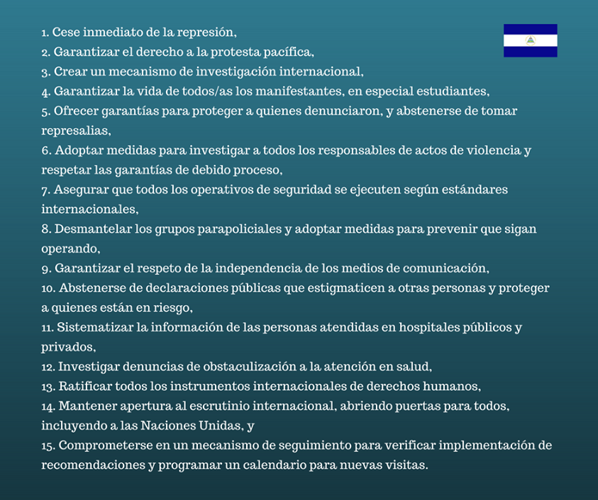 Como parte del informe y en consecuencia con los resultados de sus investigaciones la CIDH, planteo 15 importantes recomendaciones.