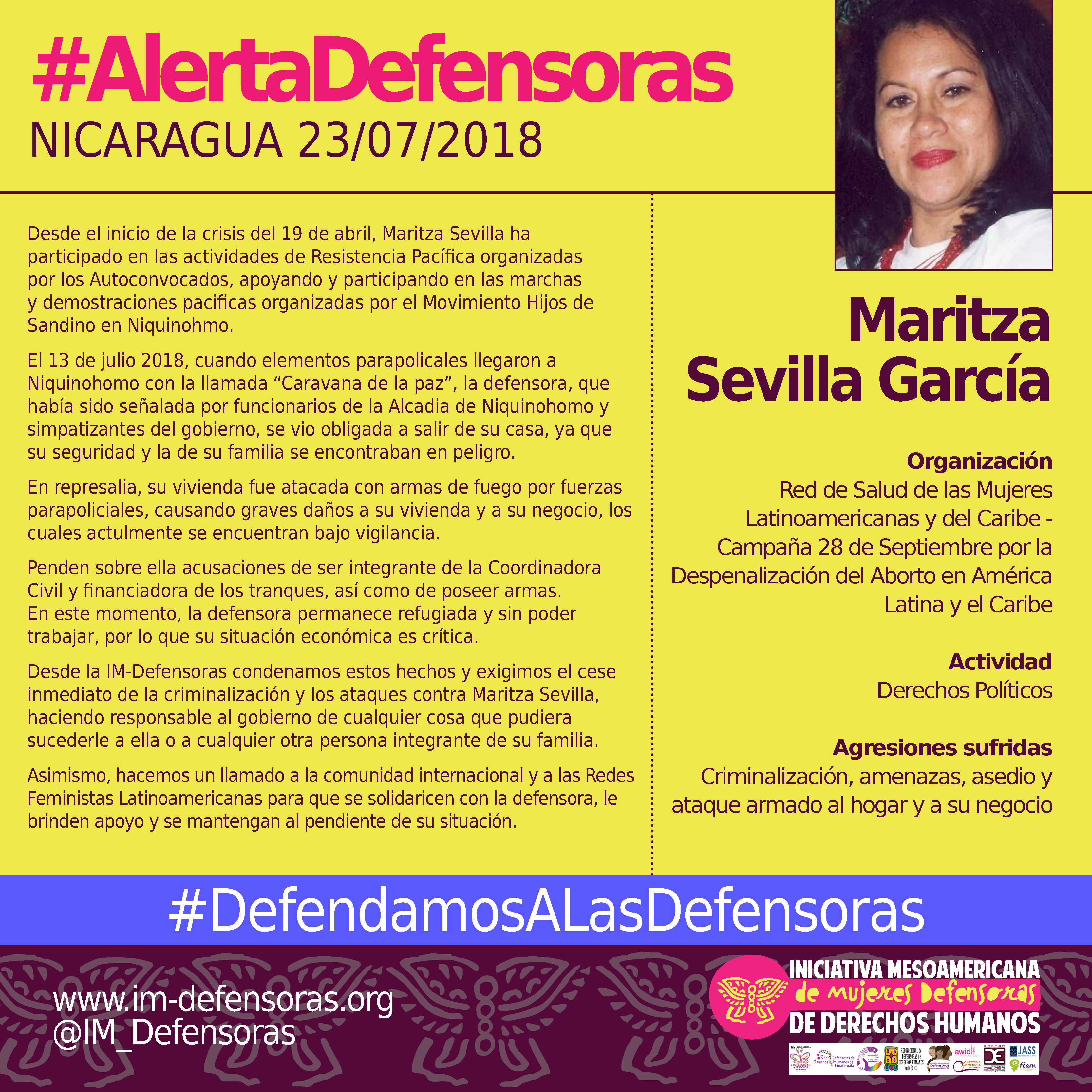 Desde la IM-Defensoras condenamos estos hechos y exigimos el cese inmediato de la criminalización y los ataques contra Maritza Sevilla, haciendo responsable al gobierno de cualquier cosa que pudiera sucederle a ella o a cualquier otra persona integrante de su familia.