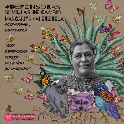 Margarita Valenzuela tiene 52 años, es integrante de la Asociación Coordinadora Nacional de Pobladores de Áreas Marginadas de Guatemala (ACONAPAMG) y hace 19 que se dedica a defender derechos humanos. En la actualidad está siendo judicializada por defender el derecho a la vivienda de comunidades marginadas y empobrecidas en Guatemala.