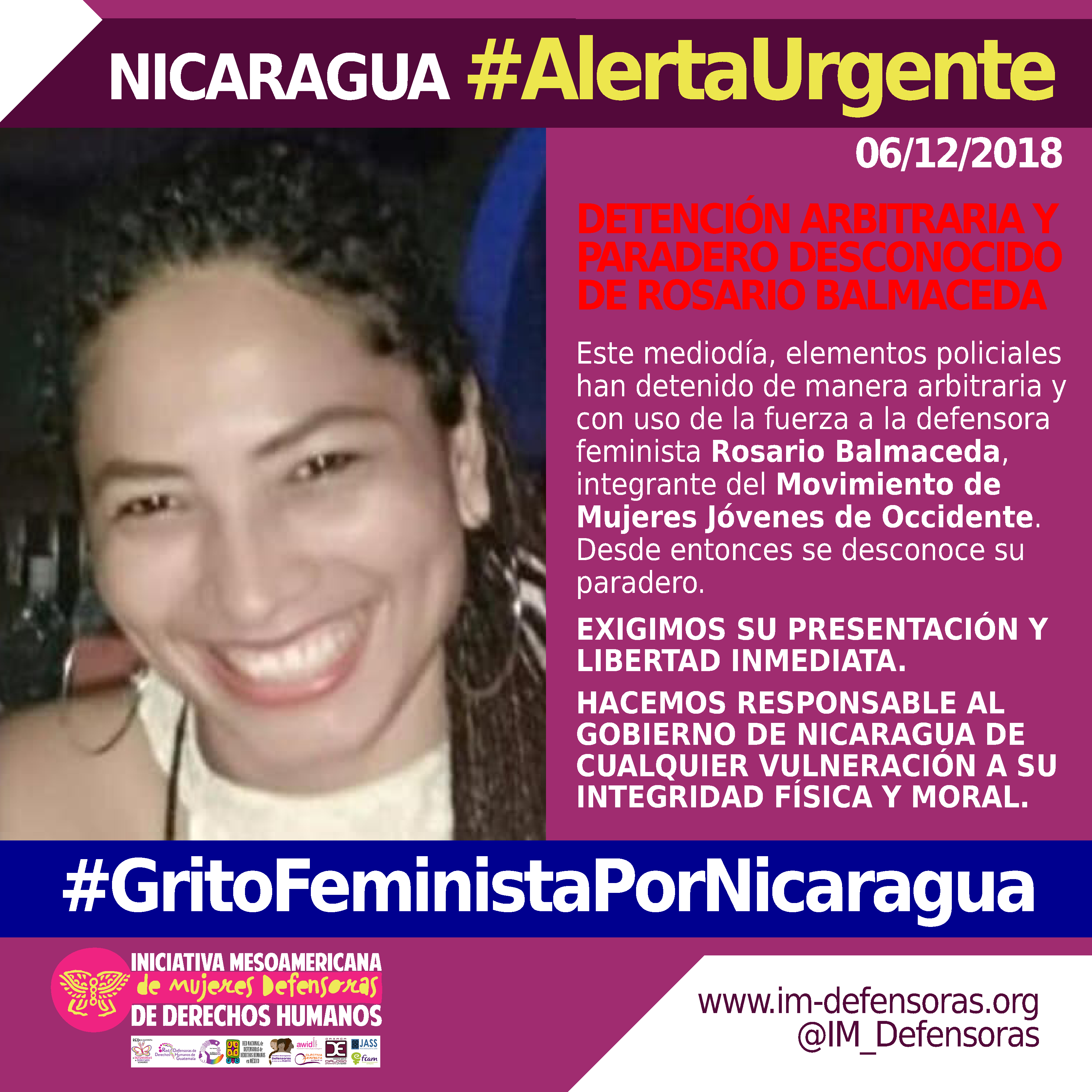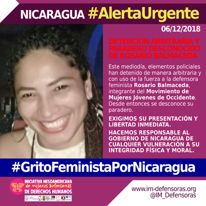 #AlertaUrgente NICARAGUA / DETENCIÓN ARBITRARIA Y PARADERO DESCONOCIDO DE ROSARIO BALMACEDA