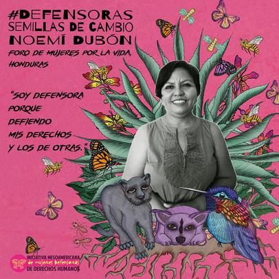 Noemí Dubón es una feminista hondureña con una experiencia de 18 años de trabajo por los derechos de las mujeres desde la convicción que los cuerpos de las mujeres son el primer territorio a conocer, cuidar y defender. Pertenece al Foro de Mujeres por la Vida, organización que además de acompañar casos de feminicidio, violencia sexual, desaparicion y trata de mujeres, promueve procesos educativos y acciones de incidencia ante instancias internacionales.