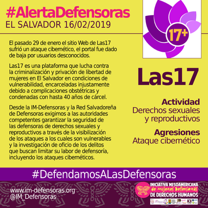 Las17 es una plataforma que lucha contra la criminalización y privación de libertad de mujeres en El Salvador en condiciones de vulnerabilidad, encarceladas injustamente debido a complicaciones obstétricas y condenadas con hasta 40 años de cárcel.