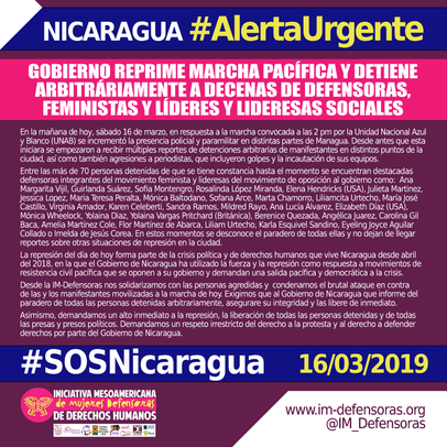 Desde la IM-Defensoras nos solidarizamos con las personas agredidas y condenamos el brutal ataque en contra de las y los manifestantes movilizadas a la marcha de hoy. Exigimos al Gobierno de Nicaragua que informe del paradero de todas las personas detenidas arbitrariamente, asegure su integridad y las libere de inmediato.