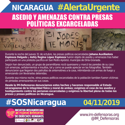 #AlertaUrgente NICARAGUA / Asedio y amenazas contra presas políticas excarceladas