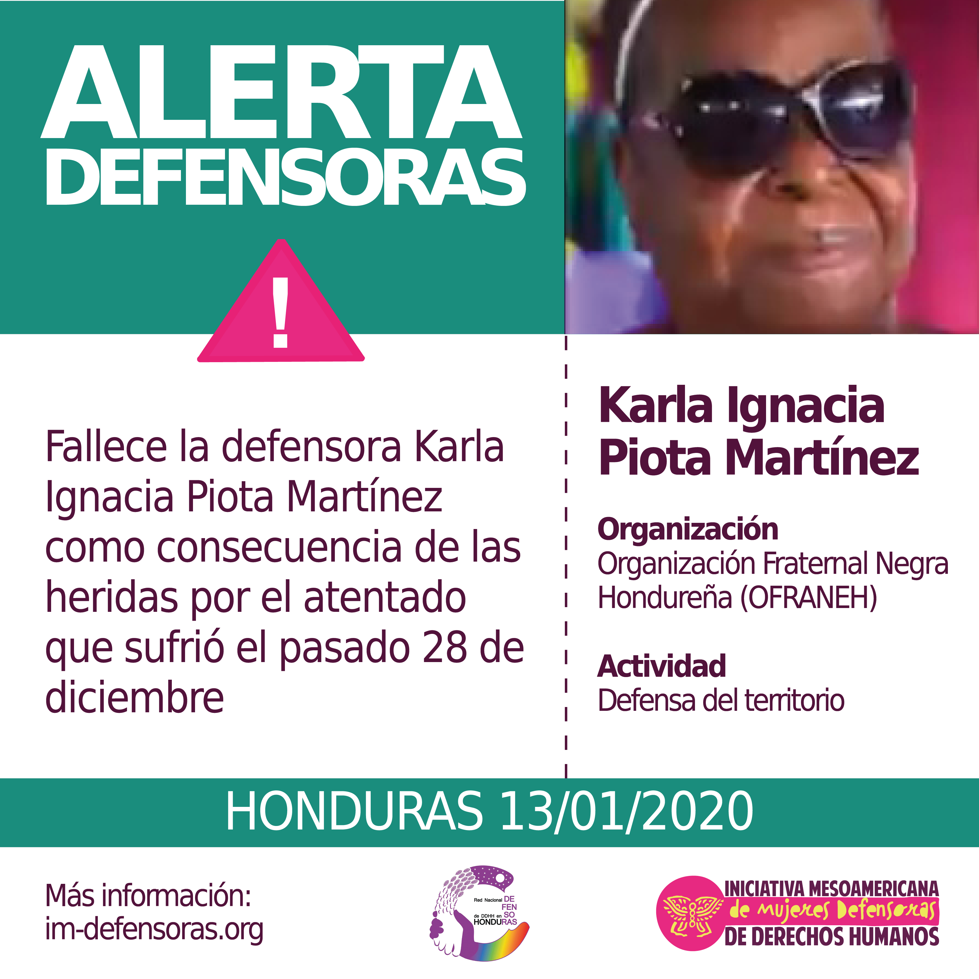 Desde la IM-Defensoras lamentamos esta terrible noticia y expresamos nuestra solidaridad con la familia de Karla Ignacia Piota Martínez y con OFRANEH.