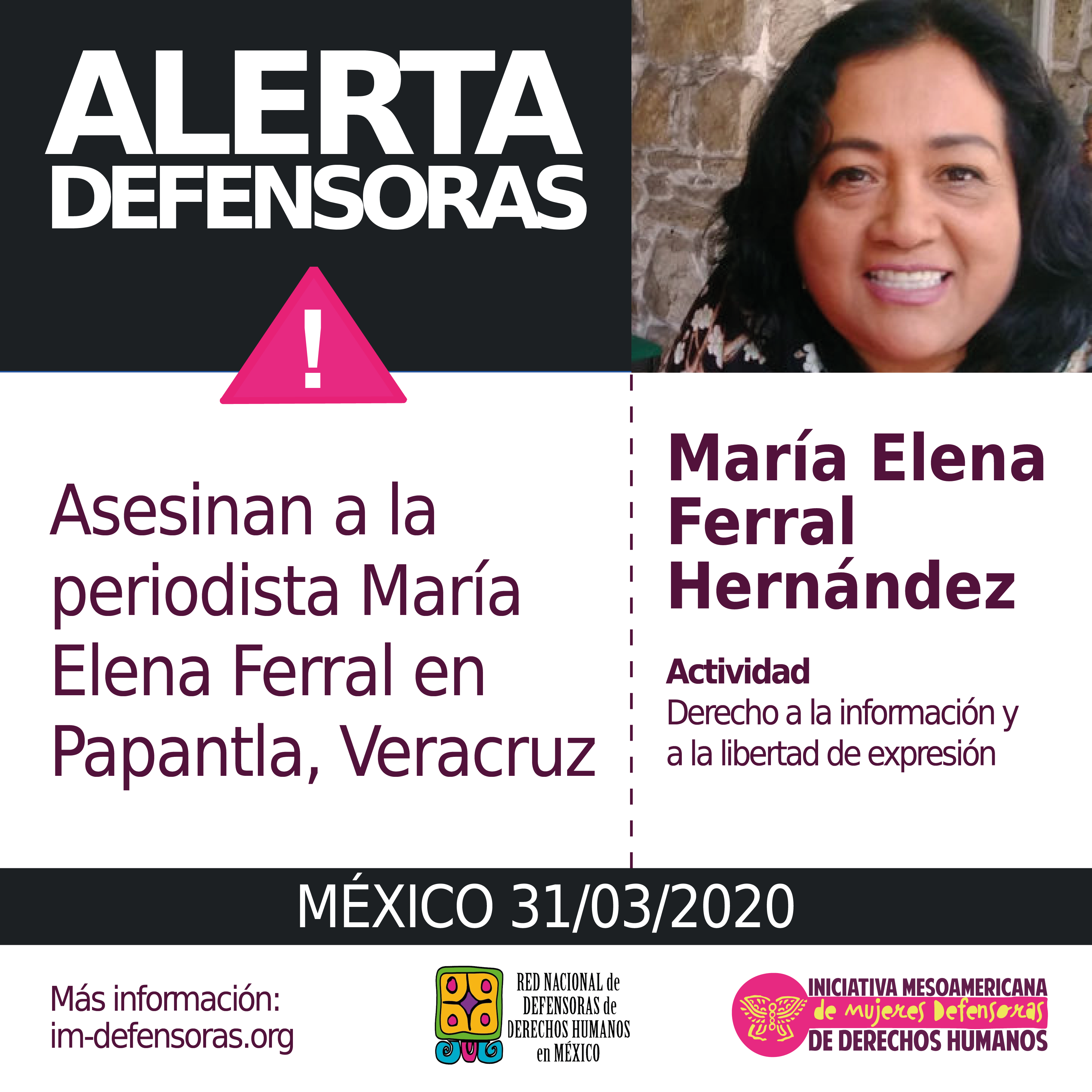 María Elena Ferral tenía 30 años de experiencia como periodista y era la creadora del portal digital de noticias “Veracruz Quinto Poder”. Debido a su trabajo de denuncias de actos de corrupción y otros delitos en el ámbito político veracruzano, en diversas ocasiones había sido objeto de amenazas y ataques en redes sociales.