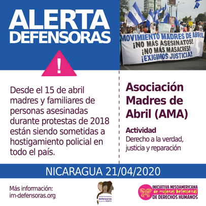 HECHOS - La Asociación Madres de Abril (AMA) ha denunciado que desde el pasado 15 de abril, en fechas durante las cuales están recordando el asesinato de sus familiares, varias de sus integrantes están siendo objeto de hostigamiento policial, asedio y ataques contra sus hogares y vulneración de su derecho a la libertad de movilización.