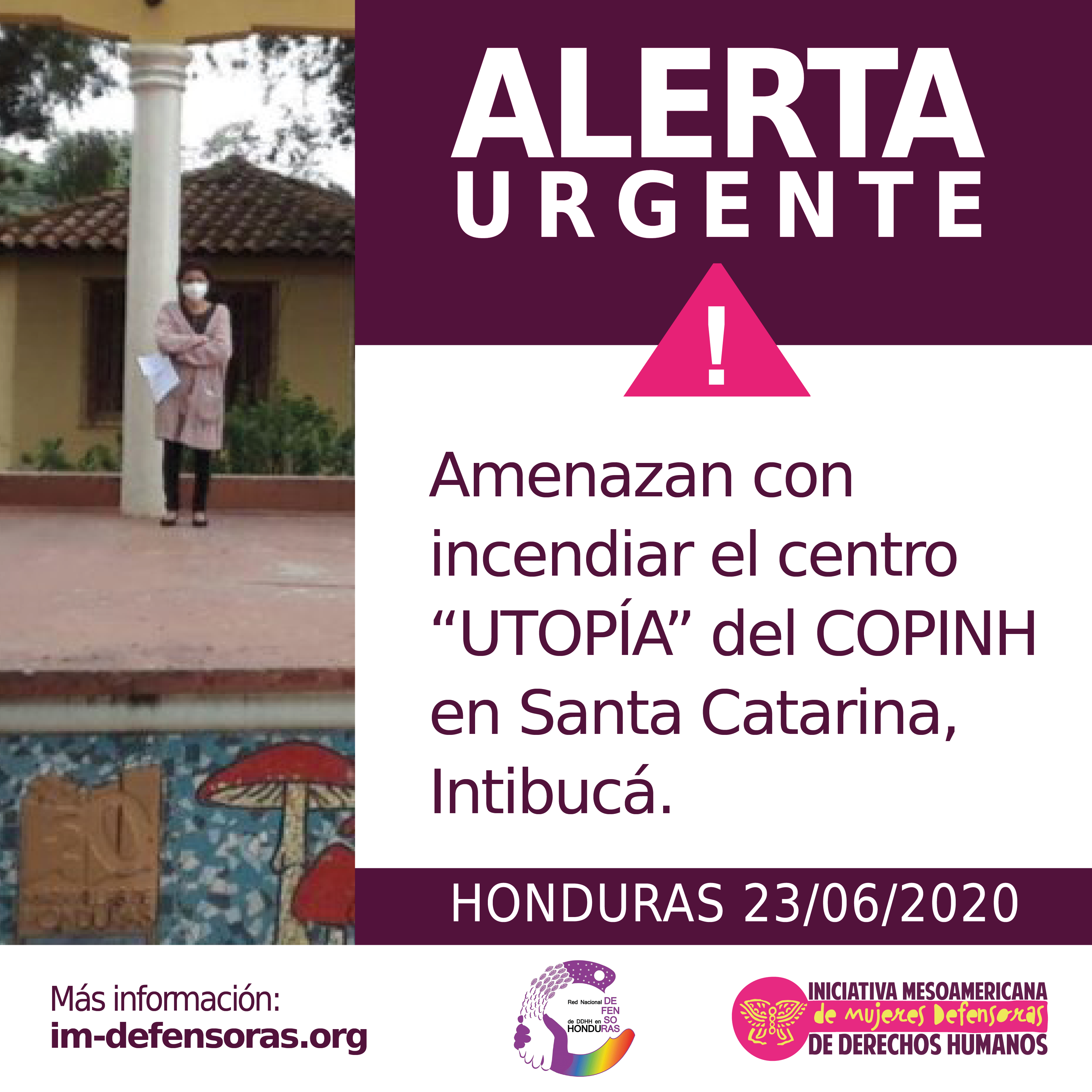 El día de ayer, 22 de junio, hemos sido informadas por nuestras compañeras de Copinh, que presuntos pobladores de Santa Catarina, Intibucá, han propagado a través de diferentes medios un comunicado en el que además de difamar y tratar de desacreditar al Consejo Cívico de Organizaciones Populares e Indígenas de Honduras (COPINH) y a su coordinadora, Berta Zúñiga Cáceres, han amenazado con incendiar el Centro de Encuentros y Amistad “Utopía” que el COPINH tiene en dicha población.