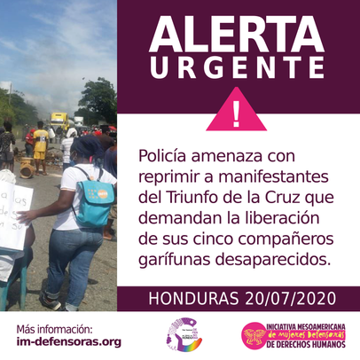 [Alerta Urgente] HONDURAS / Policía amenaza con reprimir a manifestantes del Triunfo de la Cruz que demandan la liberación de sus cinco compañeros garífunas desaparecidos.