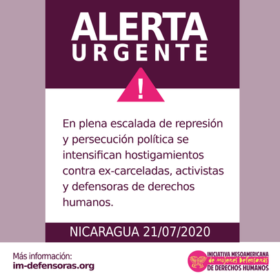 Desde la IM-Defensoras expresamos nuestro rechazo ante la escalada de la represión y violencia política que se ha cobrado una nueva víctima, así como a la intensificación de los hostigamientos y ataques contra ex-carceladas, activistas y defensoras de derechos humanos, haciendo responsable al Estado nicaragüense de cualquier atentado contra su integridad física, psicológica y moral.