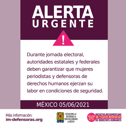 Reiteramos el llamado urgente a las autoridades estatales y a nivel federal así como a los partidos políticos para que garanticen el respeto a los derechos humanos de las defensoras y periodistas para que puedan, en el marco de la jornada electoral, desarrollar su labor informativa y de defensa de derechos humanos en condiciones de libertad y seguridad.