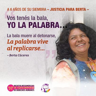 Berta y su palabra tan vigente y necesaria resuena en estos tiempos en los que exigimos la máxima condena para David Castillo y los autores intelectuales "Han pensado que la impunidad es eterna pero se equivocan los pueblos saben hacer justicia".