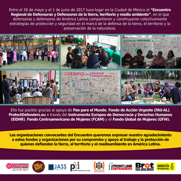 Agradecemos a organizaciones que posibilitaron "Encuentro regional de defensoras y defensores de la tierra..."