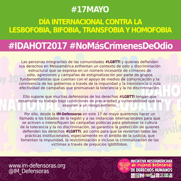 SORORIDAD / #17MAYO: DÍA INTERNACIONAL CONTRA LA LESBOFOBIA, BIFOBIA, TRANSFOBIA Y HOMOFOBIA