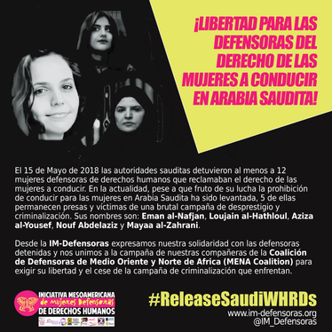 ¡LIBERTAD PARA LAS DEFENSORAS DEL DERECHO DE LAS MUJERES A CONDUCIR EN ARABIA SAUDITA!