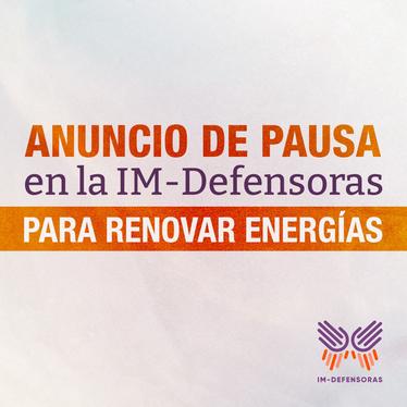 Anuncio de pausa en la IM-Defensoras para renovar energías.