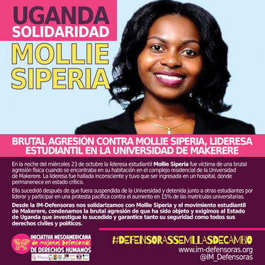 UGANDA / Brutal agresión contra Mollie Siperia, lideresa estudiantil en la Universidad de Makerere