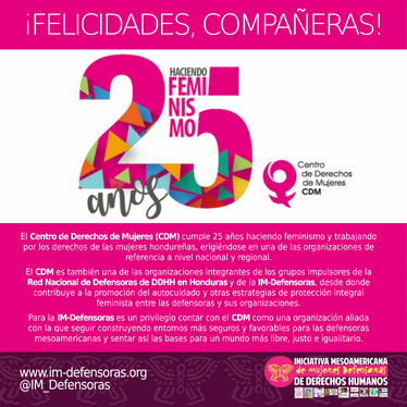 Felicitamos al Centro de Derechos de Mujeres (CDM) de Honduras en su 25 aniversario