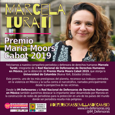 Felicitamos a la periodista mexicana Marcela Turati, Premio Maria Moors Cabot 2019