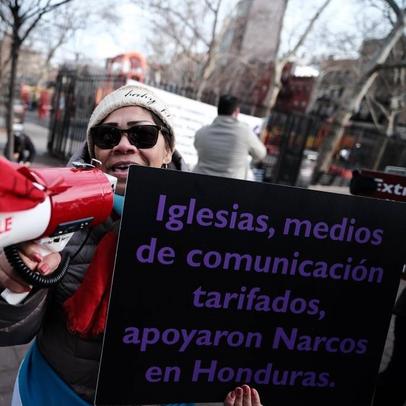 Nosotras somos las de la Red Nacional de Defensoras de Derechos Humanos en Honduras y decidimos poner nuestra palabra en público sobre lo que está pasando en el juicio a Juan Orlando Hernández, que tanto dolor, miseria y expoliación nos causó.