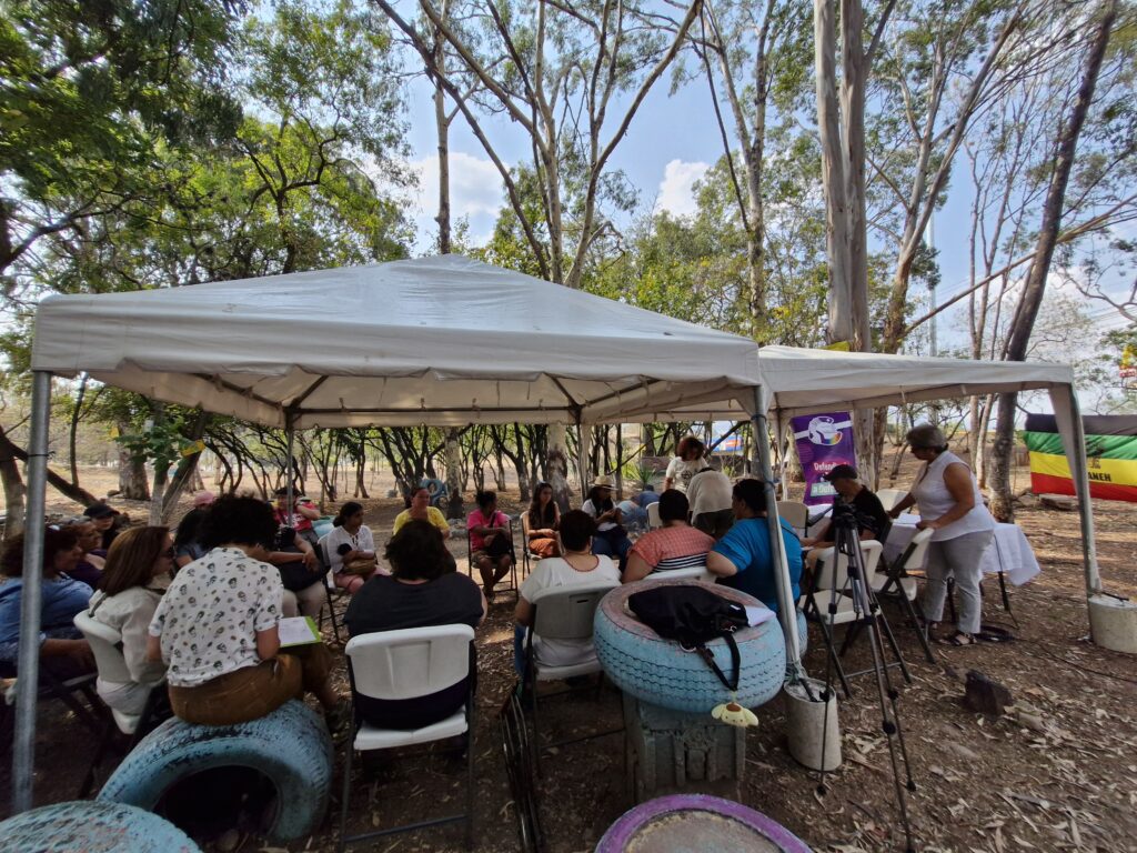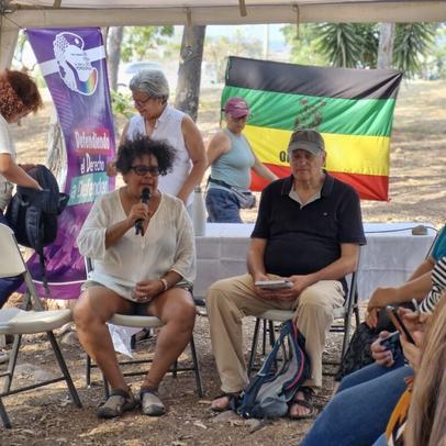 Posteriormente, en este espacio simbólico de la justicia popular y feminista, platicamos sobre: Movimientos sociales ante la avanzada autoritaria en Abya Yala, procesos y proyectos de mundos posibles. Abya Yala es un término que las organizaciones de los pueblos indígenas han adoptado para referirse al continente americano.