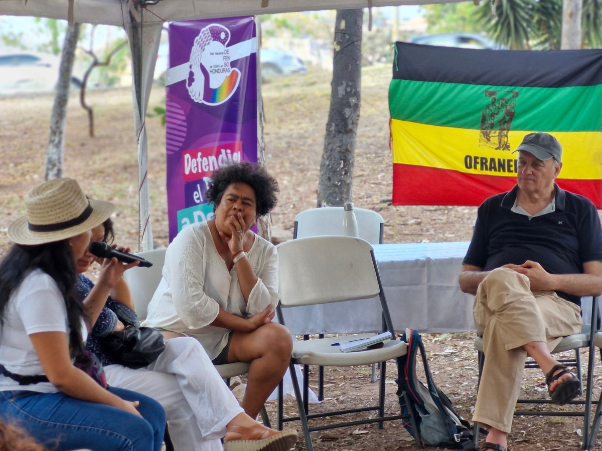 Las compañeras comenzaron aportando sus dudas, inquietudes y proponiendo temas que querían escuchar de Raúl Zibechi, quien ha reflexionado profundamente sobre movimientos sociales latinoamericanos y publicado varios libros sobre la región. Nuestra coordinadora y parte de la Organización Fraternal Negra Hondureña (OFRANEH), Yessica Trinidad, propuso una conversación dirigida a debatir sobre el desánimo, la desmovilización y la limitación de los movimientos sociales por la influencia de los partidos políticos que hay en los últimos tiempos.