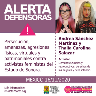 #AlertaDefensoras gabriela diaz y karen mejia (25082016)