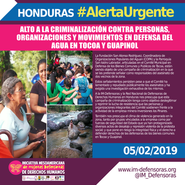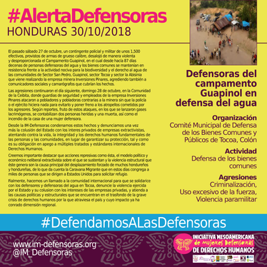 Exigimos que se respeten las exigencias y el derecho a la libre manifestación y expresión de las personas defensoras que defienden el agua y la vida en el Valle de Quimistán.
