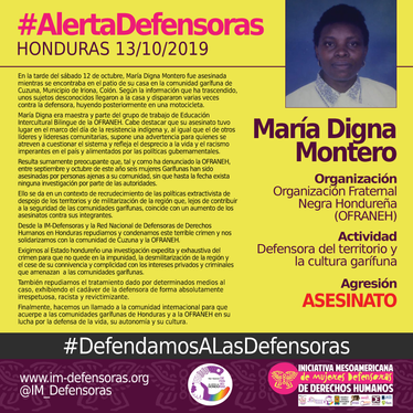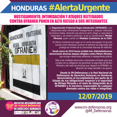 Desde la Red Nacional de Defensoras de Derechos Humanos en Honduras y la IM-Defensoras expresamos nuestra profunda preocupación ante la persistencia de estos ataques armados contra la OFRANEH, el pueblo garífuna y sus liderazgos.