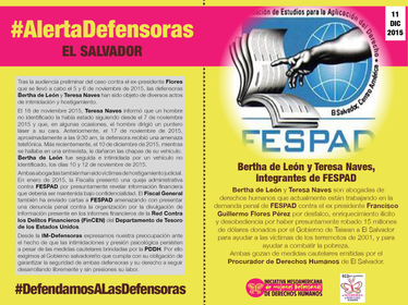 #AlertaDefensoras EL SALVADOR / Hostigamiento, intimidación y amenazas a Bertha de León y Teresa Naves, integrantes de FESPAD