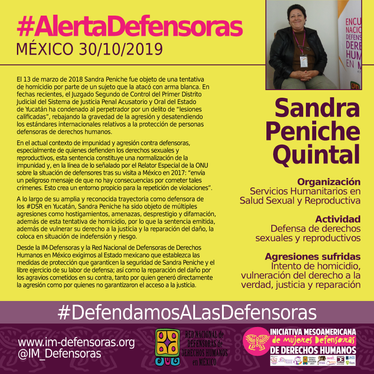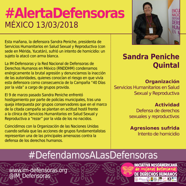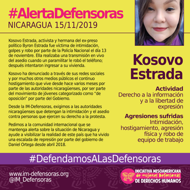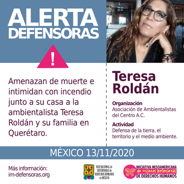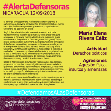 Desde la Red Nacional de Defensoras de Derechos Humanos en México y la IM-Defensoras nos preocupa la sistematicidad e incremento de las amenazas y hostigamientos que ponen en riesgo la vida de María Luisa Estrada.
