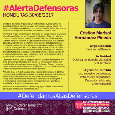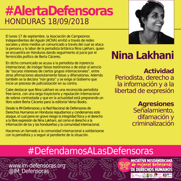 #AlertaDefensoras Lesbia Janeth Urquía 07072016
