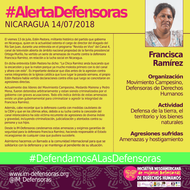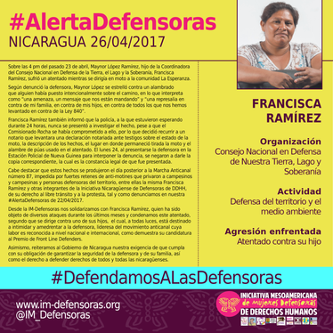 #AlertaDefensoras NICARAGUA / Detención arbitraria de Francisca Ramírez e integrantes de la “Caravana mesoamericana por el buen vivir”