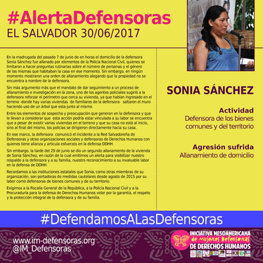 #AlertaDefensoras EL SALVADOR / Criminalización y amenazas de muerte a Sonia Sánchez, defensora del territorio y el medio ambiente