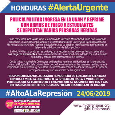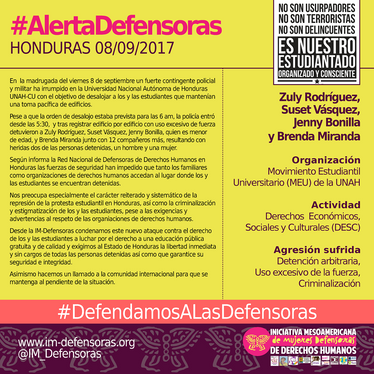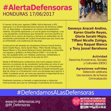 ‪#‎AlertaDefensoras‬ HONDURAS / Represión del derecho a la protesta del Movimiento estudiantil de la UNAH