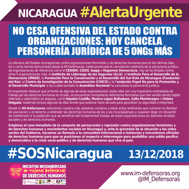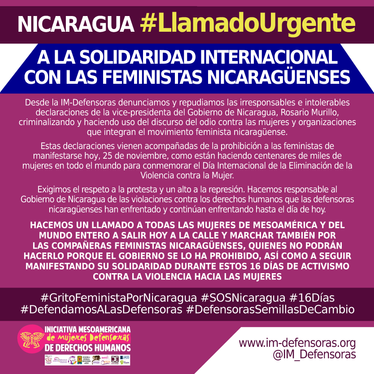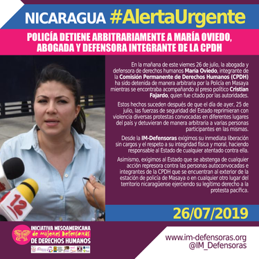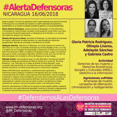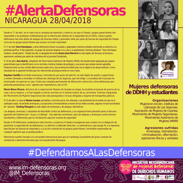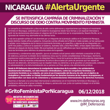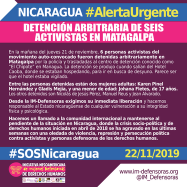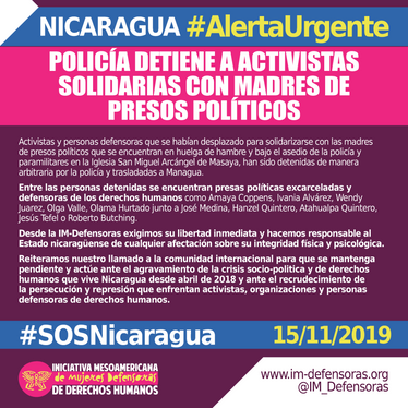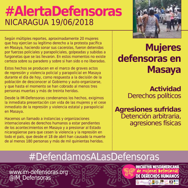 #AlertaDefensoras NICARAGUA / Detención arbitraria de integrantes de la Iniciativa Nicaragüense de Defensoras y Campaña 28 de Septiembre