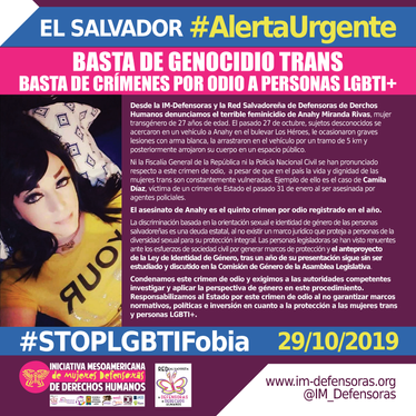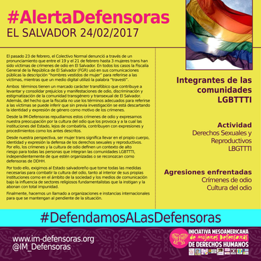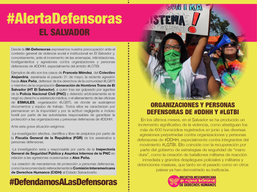 #AlertaDefensoras EL SALVADOR / PREOCUPA SITUACIÓN DE VIOLENCIA, AMENAZAS Y AGRESIONES QUE ENFRENTAN ORGANIZACIONES Y PERSONAS DEFENSORAS DE #DDHH Y #LGTBI
