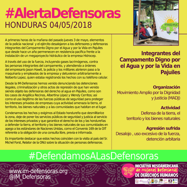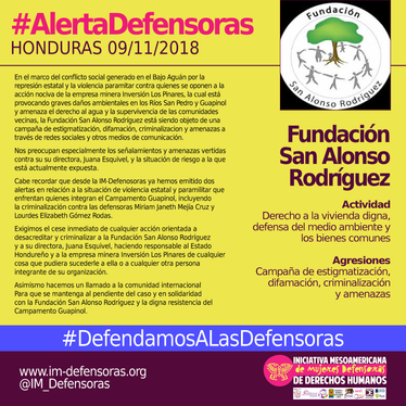 [Alerta Defensoras] HONDURAS / Difamación, intimidación y vigilancia contra manifestantes del Campamento Justicia para Juan López.
