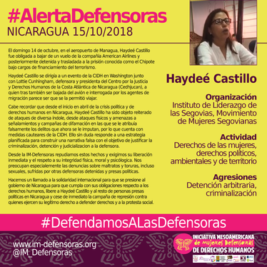 #AlertaDefensoras 26062016 NICARAGUA / Detención arbitraria de Francisca Ramírez e integrantes de la “Caravana mesoamericana por el buen vivir”
