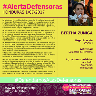 #AlertaDefensoras HONDURAS / Atacan a integrantes del COPINH y de otras organizaciones nacionales e internacionales participantes en el Encuentro "Berta Cáceres Vive"