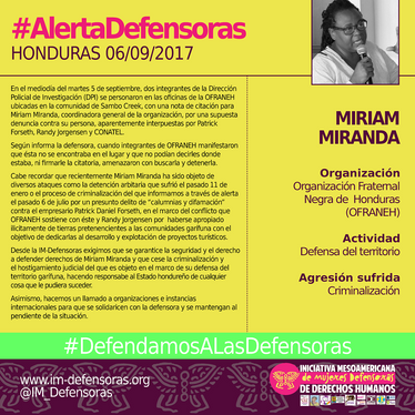 [Alerta Defensoras] HONDURAS / Sistema judicial criminaliza y persigue nuevamente a Miriam Miranda y la OFRANEH