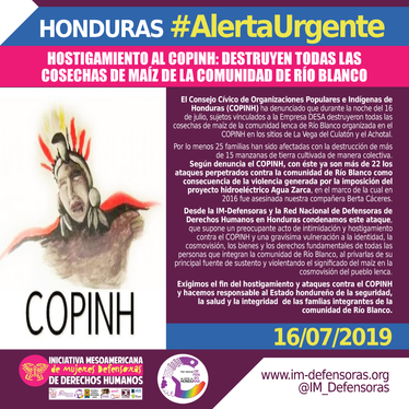 #AlertaDefensoras HONDURAS / Desalojan a 150 familias integrantes de COPINH en Río Lindo, Cortés