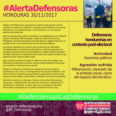 [Alerta Defensoras] HONDURAS / Durante jornada electoral nos mantendremos vigilantes ante cualquier situación de violencia contra defensoras y sus comunidades.